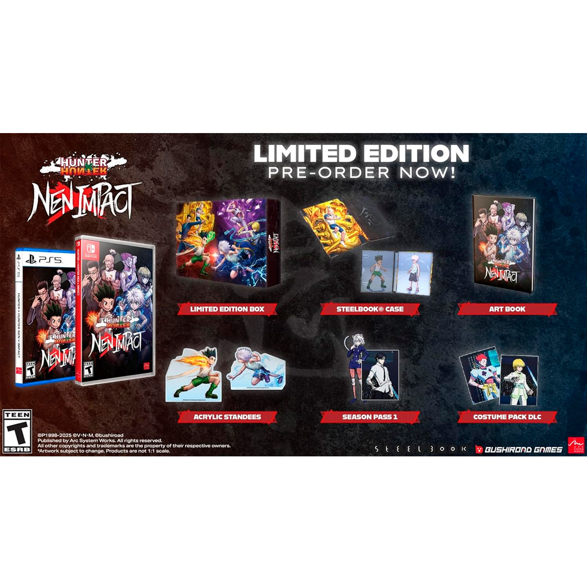 HUNTER×HUNTER NEN×IMPACT JUEGO, caja de edición limitada, estuche SteelBook, libro de arte, soportes acrílicos, pase de temporada, paquete de disfraces DLC