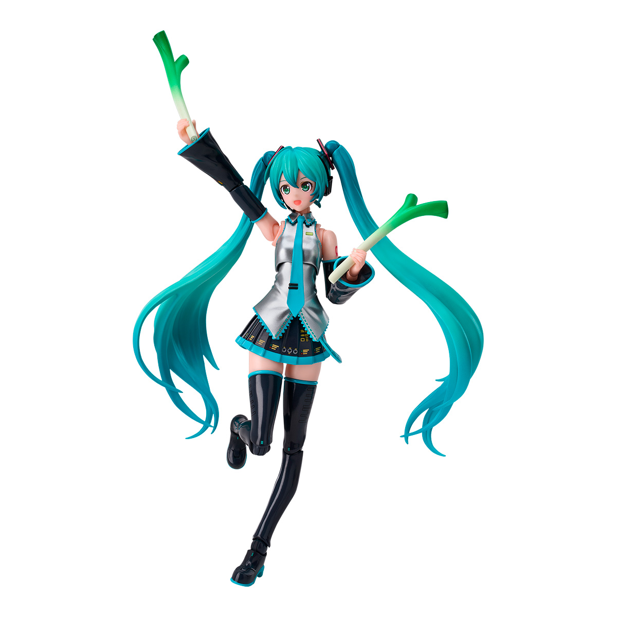 Viene acompañada de accesorios temáticos como micrófono, guitarra, piano, y sus clásicos leeks (cebollines), reflejo del homenaje al meme que la hizo famosa. El diseño recrea fielmente su traje oficial, con acabados brillantes, detalles pintados y piezas que permiten posar la figura en escenas dinámicas al estilo concierto.
